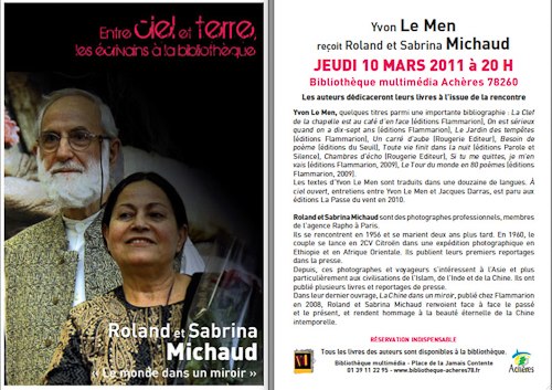 À la bibliothèque d’Achères, reçus par Yvon Le Men, rencontre avec Roland et Sabrina Michaud, photographes et voyageurs, qui ont ouvert au public occidental les portes de l’Asie. Volubile, passionné, Roland nous explique...