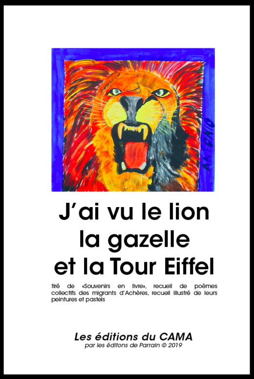 Livret de 32 pages. Réalisé à partir des poèmes collectifs et des peintures réalisés par les élèves du CAMA pendant des ateliers de conversation (et d’écriture) et des ateliers de peinture, jeunes migrants logés...