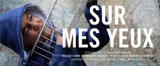 Sur mes yeux d’Elie Guillou au Théatre Antoine Vitez d’Ivry-Sur-Seine. Elie est un chanteur public. Je l’ai connu en tant que tel : auteur, compositeur, interprète. Par quelques chansons lors du spectacle clôturant « findedroitdequeldroit » à...