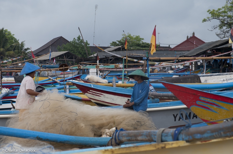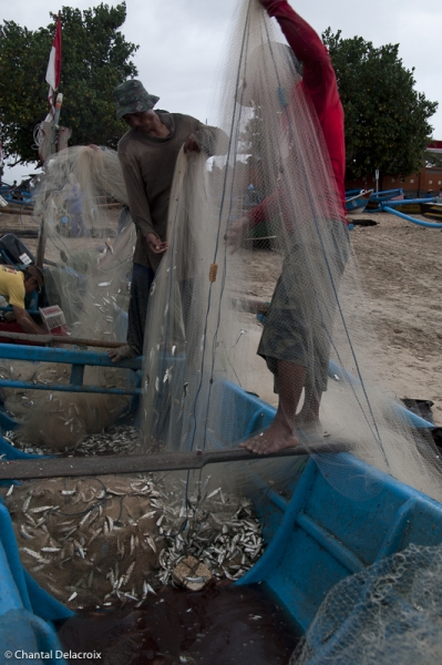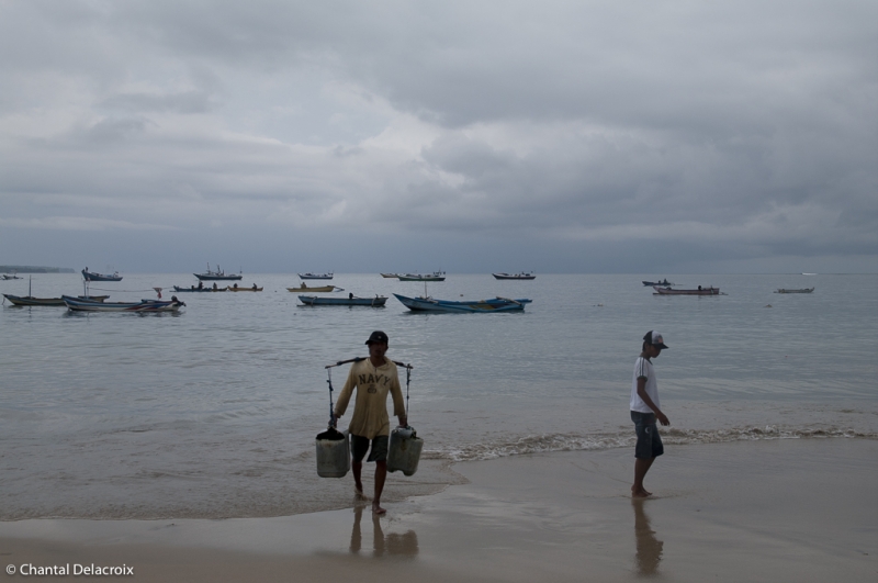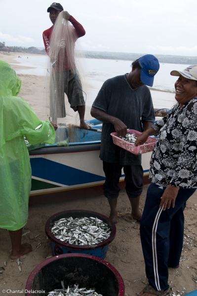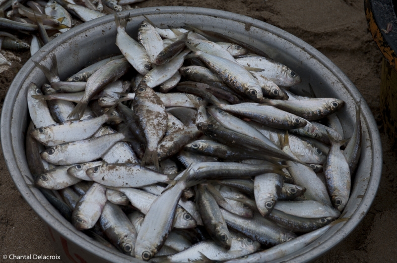 Arrivée par la plage vers 9h30. Des centaines de bateaux. Quelques-uns arrivent encore chargés de sardines, scintillements argentés dans les filets. Ballet des bassines d’aluminium.