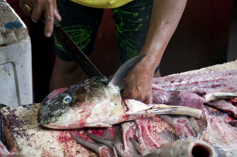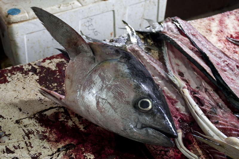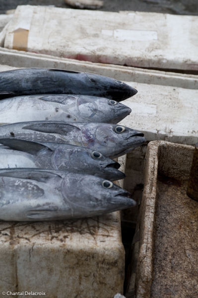 Le marché couvert est réservé aux grossistes mais aussi à des poissonniers qui débitent, pour les hôtels, les thons en grosses tranches. Impression picturale à nouveau des natures mortes. Un mélange de fraîcheur et d’écœurement sanguinolent.